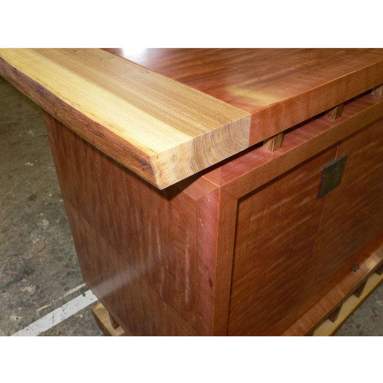This piece was made specifically for the Studio Furniture 2008 Exhibition. The doors feature some stunning quilted Myrtle. Natural edge Elm softens the otherwise hard lines of the piece.