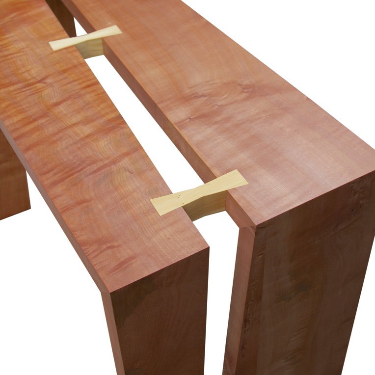 Made to look like it has been split, Huon Pine dovetail keys lock the two halves together.