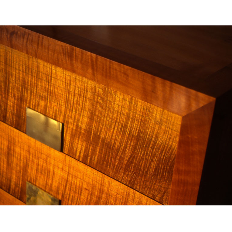 A showpiece, with 7 drawers in amazing Fiddleback Blackwood.