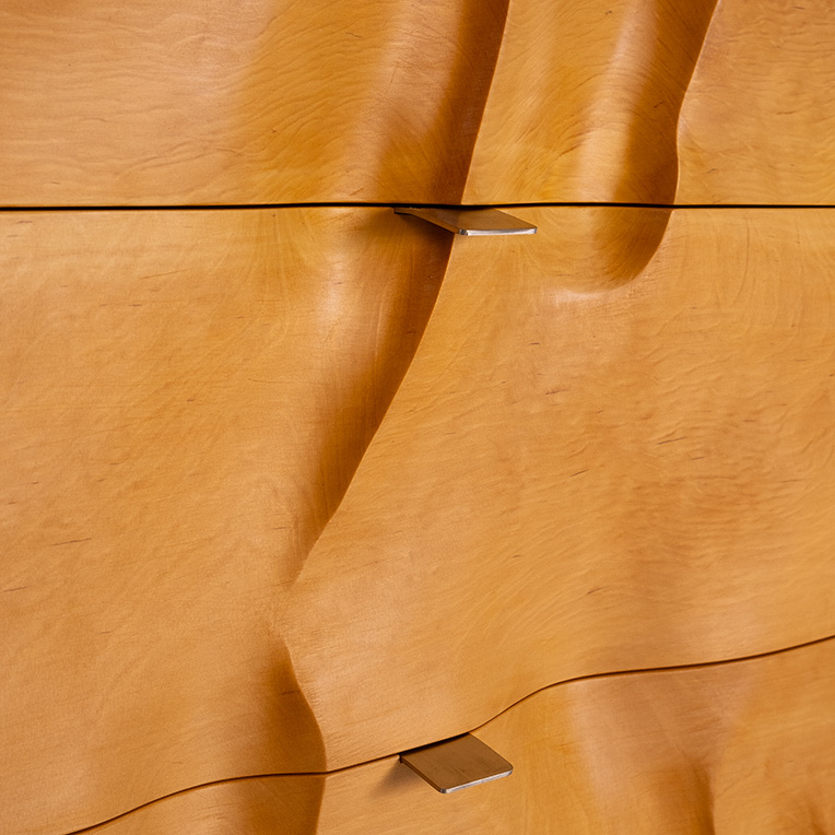 The latest iteration in a series of works that feature freeform carved Huon Pine, and the largest in the series. A significantly smaller version of these drawers was the centrepiece of Anton’s last exhibition and is now held in the permanent collection at the NGV. These pieces are a manifestation of Anton’s enduring fascination with this rare Tasmanian native timber.