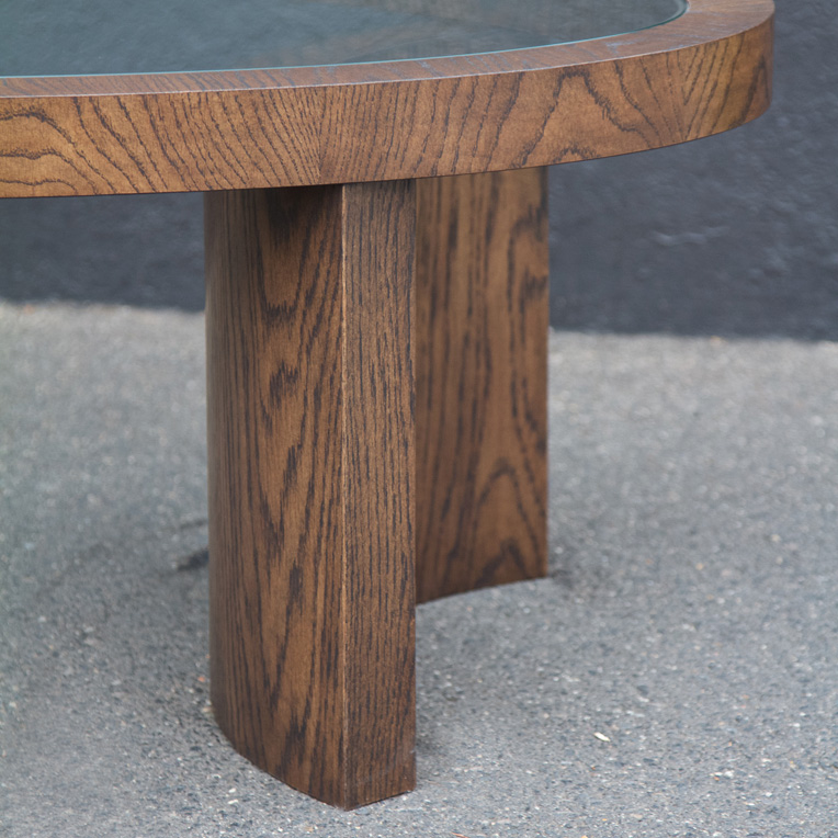 Stained American Oak. Can also be made to order in any timber. Toughened glass top.