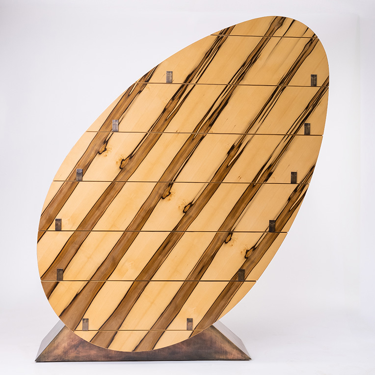 “This chest is the result of my chronic case of ‘what if ?’ The linearity of the Sassafras stood out to me and I started to think about what would happen if I mimicked the form of the Egg Chest but angled the lines of the veneer. It was a risk, but I love the outcome.”